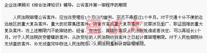 企業法律顧問《綜合法律知識》輔導:公訴案件第一審程式的期限