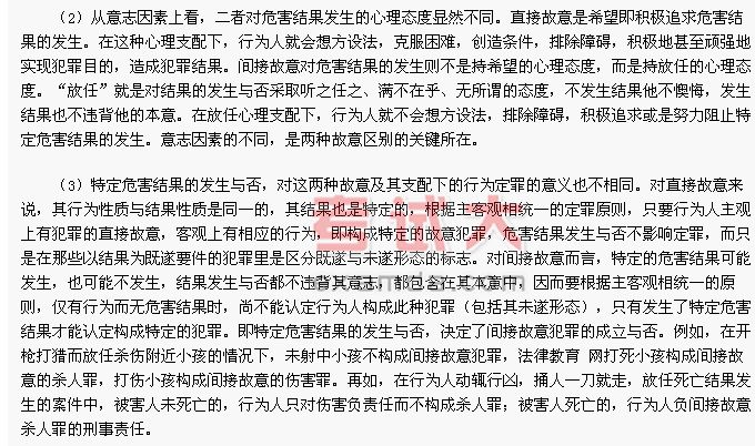 (1)從認識因素上看,二者對行為導致危害結果發生的認識程度上有所不同。犯罪的直接故意既可以是行為人明知自己的行為必然發生危害結果,法律教育網也可以是明知其行為可能發生危害結果。而犯罪的間接故意只能是行為人明知自己的行為可能發生危害結果。法律教育網