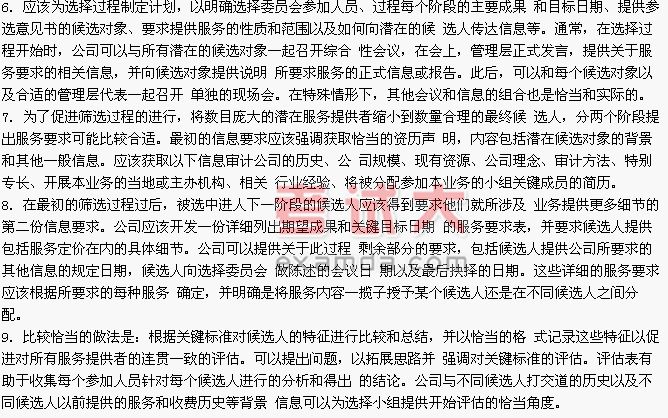 3.選擇或保留公司外部審計服務的恰當政策應該考慮以下內容: