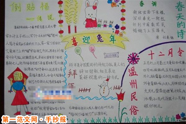 這幅春節手抄報製作精美,排版布局靈活,特別是繪畫精美,主題突出,充滿節日氛圍,非常值得借鑑。