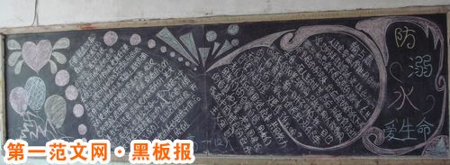 防溺水黑板報內容:“防溺水”黑板報評選 盛夏來臨,天氣炎熱,防溺水教育尤為重要。為此,淮南二十中繼向學生家長發放了《防溺水告家長書》以及召開主題班會之後,本周特開展了以“防溺水”為主題的班級黑板報評比活動。 學生們通過自己動手,蒐集材料、設計板報、書寫內容、評比等多個環節,接受了“防溺水”安全教育。此次板報評比活動,大大提高了學生的參與積極性,切實增強學生防溺水的意識、知識和能力,提高安全教育的有效性。