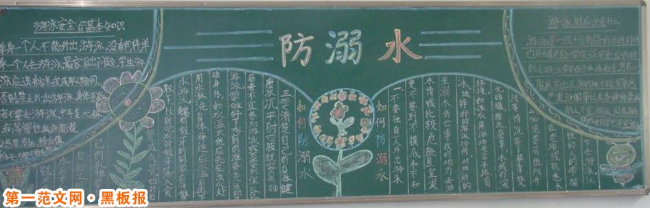 這幅防溺水黑板報製作精美,特別是黑板報花邊和繪畫非常出彩,色彩搭配美觀,欣賞性強!