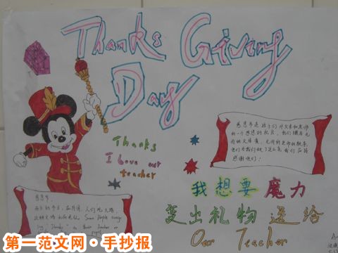 這幅感恩節手抄報製作精美,排版布局新穎,特別是色彩搭配漂亮,主題突出,充滿節日氛圍,是一幅不錯的手抄報!