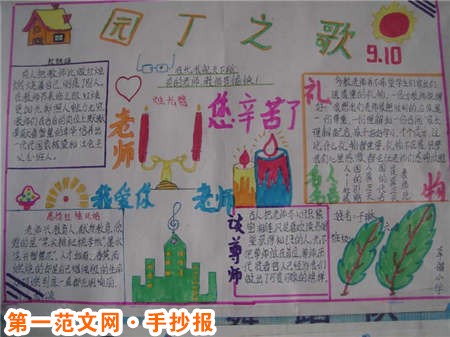 教師節手抄報圖片:老師是報曉的公雞 老師是報曉的公雞,時時激勵著我們早起。時日苦短,路途遙遠,聞雞起舞的人才能有所成就。有了您的聲音,我們才知立志發奮,我們才不會惰意頓生。新的一天從公雞的報曉開始,它給了我們無盡的動力,給了我們時間觀念,給了我們生命的效率。 老師,小樹要感謝雨水的澆淋,花兒要感謝泥土的養育,青草要感謝陽光的照射,而我卻要感謝您的教導,因為,我愛您!
