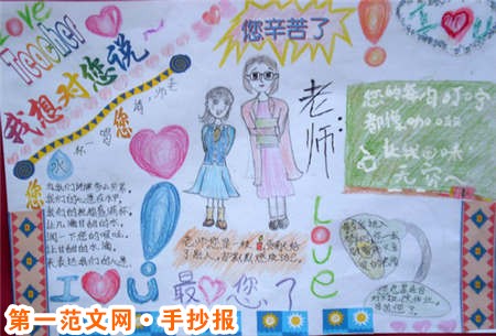教師節手抄報圖片:您的慷慨奉獻 沒有您的慷慨奉獻,哪有我收穫的今天。十二萬分地感謝您,敬愛的老師。 您給了我們一桿生活的尺,讓我們自己天天去丈量;您給了我們一面模範行為的鏡子,讓我們處處有學習的榜樣。 您是大橋,為我們連線被割斷的山巒,讓我們走向收穫的峰巔;您是青藤,堅韌而修長,指引我們採擷到崖頂的靈芝和人參。