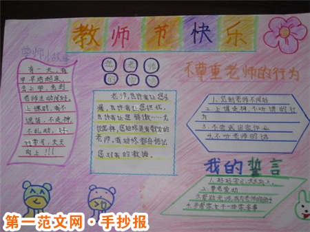 教師節手抄報版面設計圖:諄諄的教誨 老師,在今天我們身上散發的智慧光芒里,依然閃爍著您當年點燃的火花! 往日,您在我的心田播下了知識的種子,今天,才有我在科研中結出的碩果――老師,這是您的豐收! 您諄諄的教誨,化作我腦中的智慧,胸中的熱血,行為的規範……我感謝您,感謝您對我的精心培育。
