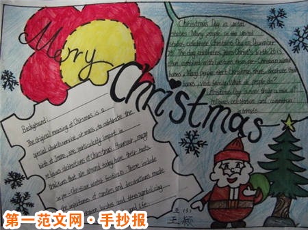 聖誕節手抄報:聖誕帽 是一頂紅色帽子,據說晚上戴上睡覺除了睡得安穩和有點暖外,第二天你還會發現在帽子裡多了點心愛的人送的禮物。 最早以前是一對紅色的大襪子,大小不拘。因為聖誕襪是要用來裝禮物的,所以是小朋友最喜歡的東西,晚上他們會將自己的襪子掛在床邊,等待第二天早上收禮。