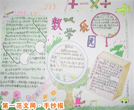 數學手抄報:有趣的數學課 這節是數學課。王老師舉起粉筆,她並未像以往一樣,在黑板上龍飛鳳舞的寫著熟悉的乘除法和小數點,而是把語文中的“ a”、“b”、“d”搬到了黑板上。我仔細打量著王老師,她的衣服穿的和平常一樣樸素,頭髮也梳得整整齊齊,並沒有哪根筋不對啊!那為何她今日卻如此古怪? 喔!原來王老師要教我們“加法交換律”:a等於一個加數b,b等於另一個加數,c等於和。例如:a+b=b+a,怪不得她今天這么古怪,看來“大千世界,無奇不有”,這句話得改成“大千數學,無奇不有”嘍!哈哈!