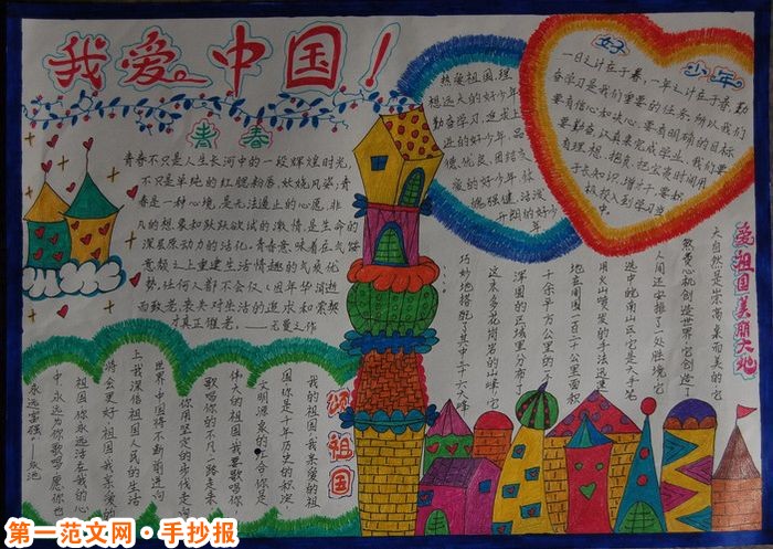 國小生手抄報內容:各國慶祝活動 每年國慶,各國都要舉行不同形式的慶祝活動,以加強本國人民的愛國意識,增強國家的凝聚力。各國之間也都要相互表示祝賀。逢五逢十的國慶,有的還要擴大慶祝。為慶祝國慶,各國政府通常要舉行一次國慶招待會,由國家元首、政府首腦或外交部長出面主持,邀請駐在當地的各國使者和其他重要外賓參加。但也有的國家不舉行招待會,如美國、英國均不舉行招待會. 這幅國慶節手抄報排版布局靈活,特別是繪畫精美,內容豐富多彩,可讀性和欣賞性都比較強!