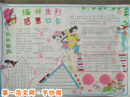 時間在流逝,時代在進步,然而革命先烈們的精神,永垂不朽!我們也許不需要為了祖國而付出我們的生命,我們也許也沒有“人生自古誰無死,留取丹心照汗青”的磅礴氣概。我們能做的,更多是認識到精神文明的重要性,學習好各門文化知識,掌握好各種科學技術,完善自己的思想,美化自己的心靈。國家的尊嚴,國家的榮譽要靠我們自己來維護。烈士們的精神要靠我們來傳承與發揚光大。國家的明天掌握在我們自己手裡。從現在做起,從我們自身做起,主動承擔起對祖國對社會的責任,施展自己的青春年華,努力學習,開拓進取。 在此, 讓我們向解放戰爭期間為建立新中國而犧牲生命的革命先烈們致敬!
