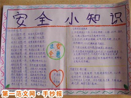 國小生手抄報內容:共創平安大道 珍愛生命,共創平安大道,共建幸福家園是我們每個人的美好心愿。重視交通安全,是我們每個人的義務,更是我們每個人的責任。當我們能做到這一切的時候,我們的社會便向構建和諧社會的目標又靠近了一步。但願交通安全法規能夠真正深入到我們每個人心中,遵守交通安全,維護交通秩序成為整個社會的習俗,珍視生命,清除惡習,以嶄新的面貌去迎接奧運的聖火,去迎接全世界的目光。讓我們攜起手來,共同努力,為首都交通文明建設貢獻自己的一份力量。