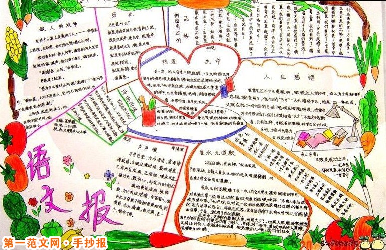 這份國小生語文手抄報線條簡潔明了,讓人看了覺得很清爽,同時又用各種水果來作陪襯,很適合國小生。