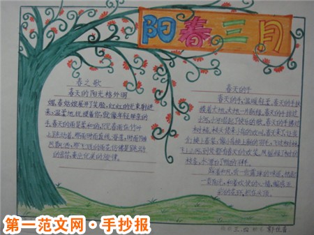 國小生手抄報內容:滿園春色 春天是一個充滿詩情畫意的季節,古往今來人們幾乎用盡了所有美好的詞語詩句來形容和讚美春天。春天踏著輕盈的腳步走來了,它給大地穿上了一層綠色的服裝,使大地煥然一新,滿園春色,春天給人們帶來了無限的歡樂和希望,給人們帶來了勃勃的生機和活力,催促我們奮發向上。我愛這迷人的春天。 春天,它就好象一個天真活潑的小姑娘,拿著一隻彩色的神筆,到處歡快地畫著。畫出了一幅幅幸福美好的生活畫面,畫出了人生的美好夢想和前景。畫出了你的追求和理想。