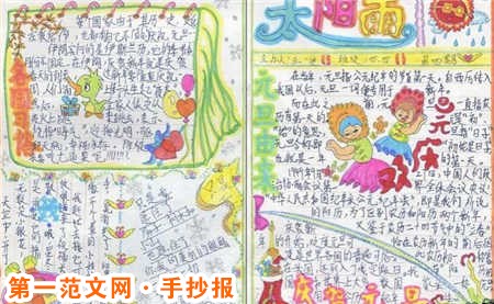 迎新年手抄報:祝元旦快樂 讓元旦歡樂驅走你生活疲憊,讓你的心靈跟隨節日一起陶醉,願假期的休息帶給你精力充沛,節後上班信心百倍!祝一切如意! 元旦佳節不送禮,發條簡訊祝福您,健康快樂唱伴你,好運和你不分離,還有讓我告訴你,財神已經跟隨你。祝元旦快樂!