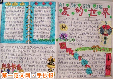 元旦手抄報:新年的到來 想想,時間過得好快啊,轉眼間又是一年。念念不捨的一切,隨著新年的到來卻又淡忘了,一直一直想要忘記的事情,也隨著新年的到來而忘記了。 不管前方的路上面臨著什麼,不管前面的路上還會遇到多大的困難,我們都會充滿信心,充滿期待,充滿夢想,越是艱難越向前,張開我們的懷抱吧,讓我們一同迎接新年黎明的曙光。