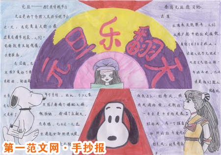 元旦手抄報:一定要幸福 元旦了,送你一件外套:口袋叫溫暖;領子叫關懷;袖子叫體貼;扣子叫思念;讓這件外套伴你渡過每分每秒,一定要幸福喔! 元旦快到了,我準備給你拍張頭部照片,你橢圓的腦袋像雞蛋,你微笑的臉蛋甜蜜燦爛。我把照片當做送給你的新年禮物,寓意非常明顯:快樂圓蛋(元旦)!