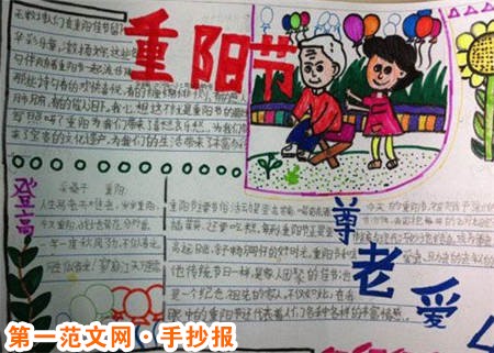 重陽節手抄報:炎節在重九 炎節在重九,物華新雨余。清秋黃葉下,菊散金潭初。 萬實行就稔,百工欣所如。歡心暢遐邇,殊俗同車書。 至化自敦睦,佳辰宜宴胥。鏘鏘間絲生,濟濟羅簪裾。 此樂匪足耽,此誠期永孚。 重陽夜集蘭陵居與宣上人聯句 【唐】李益 蟋蟀催寒服,茱萸滴露房。 酒巡明燭刻,籬菊暗尋芳。 新月和秋露,繁星混夜霜。 登高今夕事,九九是天長。 奉陪裴相公重陽日游安樂池亭 【唐】李郢 絳霄輕靄翊三台,稽阮襟懷管樂才。蓮沼昔為王儉府, 菊籬今作孟嘉杯。寧知北闕元勛在,卻引東山舊客來。 自笑吐茵還酩酊,日斜空從絳衣回。