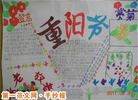 重陽節手抄報:行人惆悵對重陽 重陽日上渚宮楊尚書 【唐】李群玉 落帽台邊菊半黃,行人惆悵對重陽。 荊州一見桓宣武,為趁悲秋入帝鄉。 重陽日賜宴曲江亭,賦六韻詩用清字 【唐】李适 早衣對庭燎,躬化勤意誠。時此萬機暇,適與佳節並。 曲池潔寒流,芳菊舒金英。乾坤爽氣滿,台殿秋光清。 朝野慶年豐,高會多歡聲。永懷無荒戒,良士同斯情。 重陽日即事 【唐】李适 令節曉澄霽,四郊煙靄空。天清白露潔,菊散黃金叢。 寡德荷天貺,順時休百工。豈懷歌鐘樂,思為君臣同。 至化在亭育,相成資始終。未知康衢詠,所仰惟年豐。