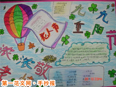 重陽節手抄報:登高節 在古代,民間在重陽有登高的風俗,故重陽節又叫“登高節”。相傳此風俗始於東漢。唐代文人所寫的登高詩很多,大多是寫重陽節的習俗;杜甫的七律《登高》,就是寫重陽登高的名篇。登高所到之處,沒有劃一的規定,一般是登高山、登高塔。還有吃“重陽糕”的習俗。