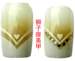 獅子座美甲的設計圖案[圖] 獅子座美甲的設計圖案[圖]性格特徵:火象星座的獅子座人十分有自信,崇尚自由,不喜歡計較小事,慷慨,有話直說,個性活潑,勇於接受挑戰。 獅子座的顏色是:桔色、金黃色、暗紅色 獅子座的指甲設計:獅子座的人喜歡陽光,因此可以桔色或暗紅色指甲油為底色,趁漆未乾前用水鑽或小金屬珍珠或小彩石排列扇形的圖案,最後塗一層透明指甲油或金黃色的光亮指甲油以固定指甲上的裝飾。 第2頁第3頁第4頁第5頁