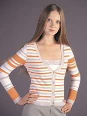獅子座新款秋裝上市[圖] 獅子座新款秋裝上市[圖]寬大的領口,配之以寬窄不一的橙色條紋,將活力、熱情巧妙的結合到了一起,給人火辣辣的動感。獅子美眉穿上它在秋日的陽光下奔跑,宛如耀眼的烈火精靈,讓所有目睹這般風采的人都永生難忘。第2頁第3頁第4頁第5頁
