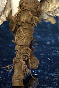 水瓶座新款冬鞋上市[圖] 水瓶座新款冬鞋上市[圖]水瓶座時尚冬鞋:讓·保羅·戈蒂埃-重返印第安 當人們還在欣賞自己的茅草裙時,水瓶美眉已經傳著皮衣上街了;當人們剛剛能接受皮鞋時,水瓶美眉又穿上草鞋去叢林裡旅遊了!凌亂的流蘇,緊繃的腿帶,冷漠的土棕色--特立獨行中的孤獨、自在有誰知曉?第2頁第3頁第4頁第5頁