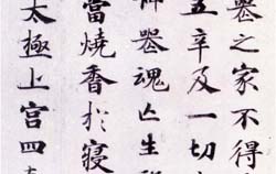 鍾紹京,生卒年不詳。字可大。一作虔州贛(今江西贛州)人,一作穎川(今河南禹縣)人。鍾繇十世孫。初為司農錄事,以善書直鳳閣。擅書,尤工小楷。時號“小鍾”,以繇為“大鐘”。則天武后時,明堂門額及諸宮殿題榜《九鼎銘》皆其所書。景龍間,拜中書令,封越國公,後遷少詹事,年80餘卒。一生篤嗜書畫,不惜大費,破產求書,如王羲之、王獻之、褚遂良真跡,家藏至數十百卷。張昌宗搜訪天下圖書,以紹京精於鑑別,奏請直秘書;凡御府寶匣奇蹟,莫不遍覽。書法繼承歐陽詢、虞世南、褚遂良傳統,風格與褚遂良、薛稷相近。鍾紹京精於書法,唐明皇在藩邸愛重其書,故鍾書歷來評價很高。陶宗儀《書史會要》評:“工正書,行、草,峻利豐秀。”傳世書跡有《轉輪王經》、《靈飛經》、《升仙太子碑陰》等。《靈飛經》,小楷刻帖,無款。傳為鍾紹京書。署“開元廿六年(738)二月。”據《柳庵集》載,明初真跡曾歸永樂進士王直,後歸海寧陳氏,始以之入石。帖後有趙盂頫二跋,皆偽。元袁桷、明董其昌皆以此經為唐鍾紹京書;清王澍、錢泳則以為唐經生書。此帖系應科舉而作,為著名的小楷傑作。此帖有唐人風格,並得“二王”規範。此帖由於鐫刻精良,仍能使人感到寫本的丰神俊采。此書結體寬綽舒展,端莊靈動,瘦硬清勁。雖有細若毫芒處,而骨力不減。靈飛經為後世的學者提供了極好的小楷範本。此帖真跡明代尚存,刻本很多,以《渤海藏真帖》、《滋惠堂帖》為最精。上海藝苑真賞社有影印本。