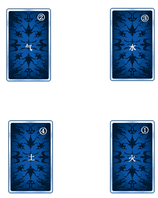 所謂的"要素",指的就的氣、火、水、土等西方占星術里的四大元素,是塔羅牌副牌里的四大元素組.這種推測法是利用四種元素的基本特性,專門為想了解如何解決總是的求問者提供解釋的擺法.求問者要先描述清楚自己目前面臨的困難.以及想得到的結局.