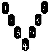 切實牌後,將最上面的第一張到第七張取同,依圖示的位置放好。要小心,不要把牌的上下方向弄顛倒!牌型完成,掀牌進行解讀。