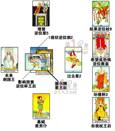 這一例中的指示牌是星王后,表示問卜者喜歡奢華、排場。