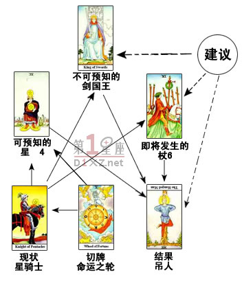 問卜者正在進行著一項投資計畫,是在他以前從沒涉足過的領域進行投資,因此他心理上一直不很踏實。在投資前,他做過全面的諮詢,專門請這方面的專家進行過論證和判斷,反饋回來的都是比較正面的信息,使他下定了決心。但投資項目進行中,雖然一切進展都很順利,他卻又開始患得患失。經人介紹,他找到了塔羅占卜師,進行了下面這次占卜。