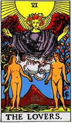這是塔羅牌中解釋愛情最好的一張牌,他代表這人生的青春期。牌面中一對男女在天使的召喚下走到一起,成為戀人。儘管陽光普照,充滿了幸福的感受,但戀人的後面卻有著很多考驗在等著他們——希望之樹和毒蛇盤踞的禁果之樹。