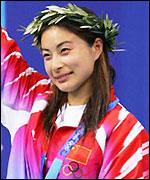 也許是等待金牌的歲月太漫長,也許是因為與吳敏蓮的配合默契得天衣無縫而毫無懸念地把金牌囊入懷中,她在賽後坦言並沒有想像中那么激動。國歌奏起,郭晶晶有點哽咽,但很快就平靜下來了,一直面帶笑意。