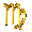 象徵了牛的頭,也是以簡單的線條描繪出牛的形象,由金牛座的神話可以發現,金牛座的外表溫馴,但內心充滿欲望。由另一方面看,圓圓的牛臉表現出安逸和享樂,但上面的牛角則提示我們脾氣有爆發的時候。