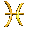 象徵兩條魚,而其中有一條絲帶將它們聯繫在一起。由雙魚座的神話中可以聯想到雙魚座逃避的特質。雙魚座的兩條魚是分別游向兩個方向,除了表現出雙魚座的二元性之外,也象徵了雙魚座的矛盾和複雜。