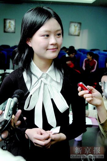 昨天,被美國知名軟體開發公司———topcoder聘為亞洲副總裁的北京師範大學大四在讀女生吳瑩瑩,向記者講述她的“傳奇”經歷。范繼文 攝 (圖片來自:京華時報)